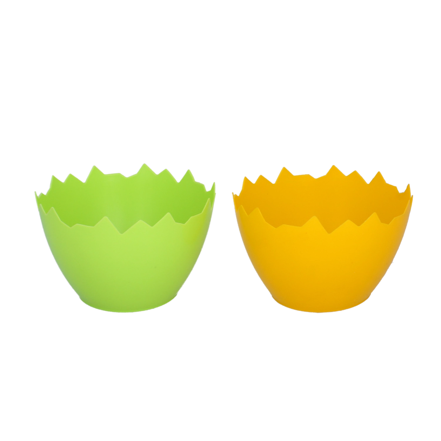 Décoration stylée pour le printemps et Pâques : cache-pot en plastique de 15 cm de diamètre en forme de coquille fendue, apportant à l’intérieur une fraîche atmosphère printanière. Grâce à ses couleurs pastel, à son plastique léger et résistant et à son entretien facile, il est idéal pour les compositions florales, la culture du cresson et comme pièce maîtresse de la décoration pascale.