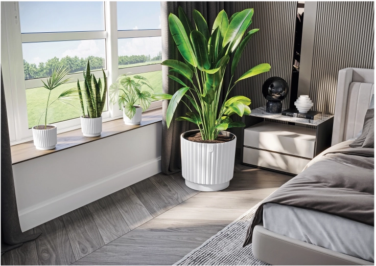 Sa forme ronde et épurée s’intègre aussi bien aux espaces modernes que traditionnels, sur le balcon, la terrasse ou dans le salon. Le matériau résistant aux intempéries et au gel garantit une longue durée de vie en extérieur. Son volume de 11,28 l offre suffisamment d’espace pour les herbes aromatiques, les fleurs et de petits arbustes ornementaux.