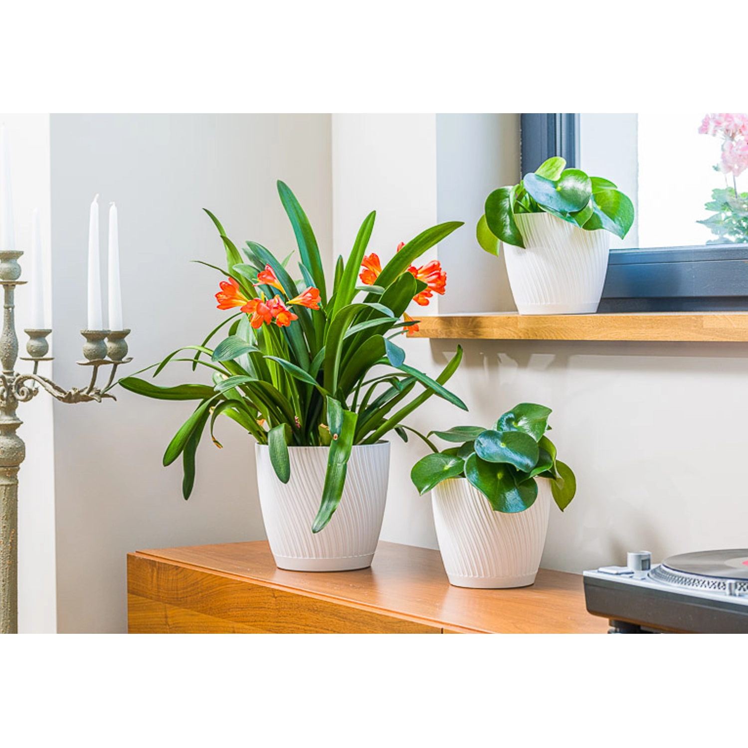 Élégant cache-pot Mika Eco Recycled de 19 cm de diamètre en blanc, idéal pour la verdure d’intérieur comme d’extérieur. Fabriqué en plastique recyclé, il est léger, résistant aux rayures et facile à nettoyer. Sa texture ondulée moderne et sa soucoupe amovible avec trous de drainage assurent une croissance saine des plantes et un style soigné.