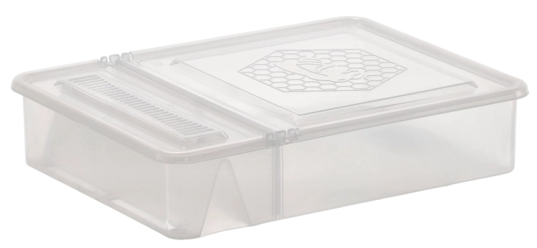 Des compartiments séparés avec couvercles rabattables permettent de distribuer la nourriture progressivement, de garder l’ordre et de minimiser le dérangement des abeilles lors du remplissage.