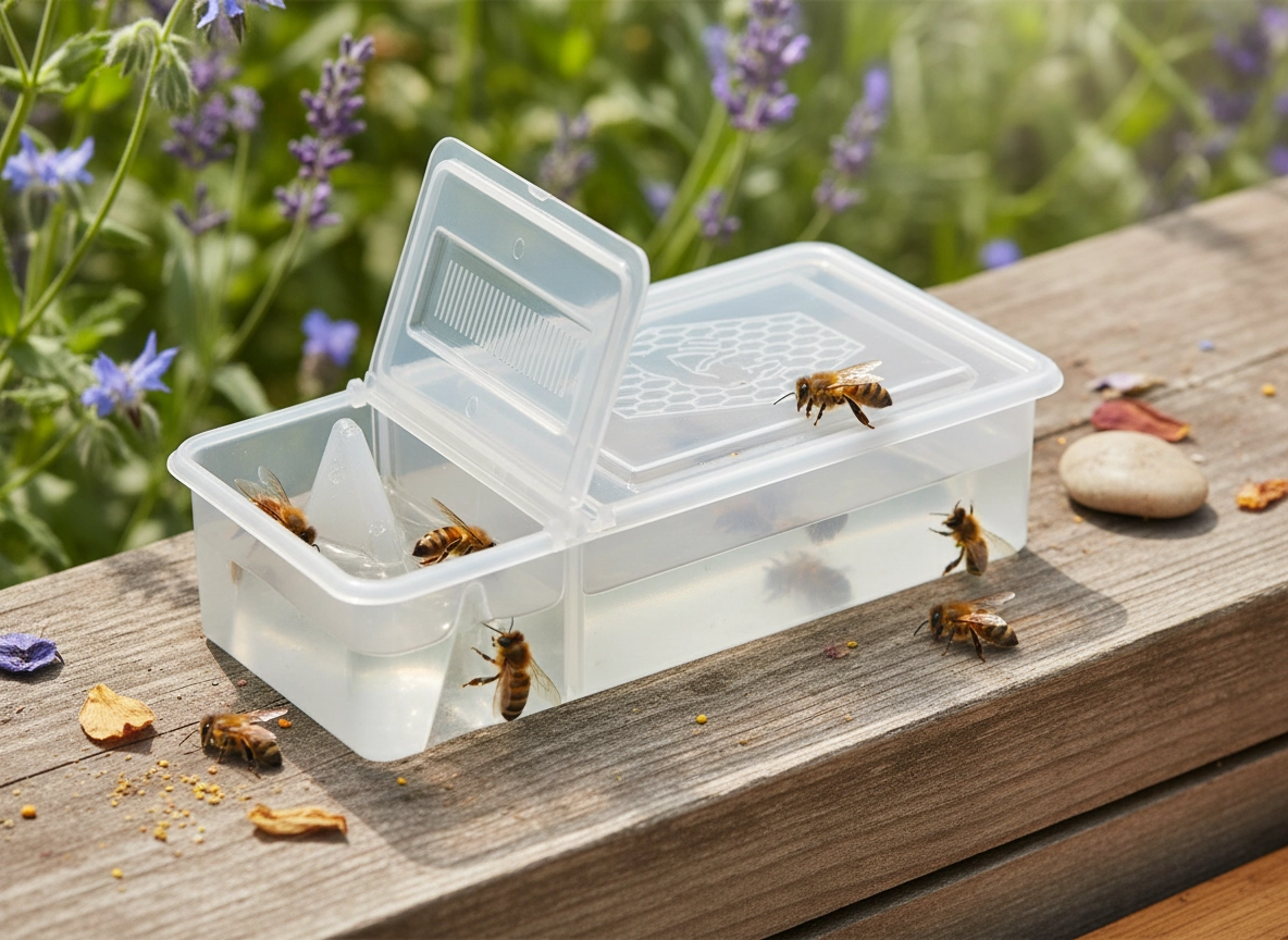 Les deux compartiments avec couvercles séparés améliorent l’hygiène et réduisent le risque de perturber inutilement les abeilles lors du remplissage. La conception simple est facile à entretenir et se nettoie rapidement, de sorte que vous pouvez utiliser le nourrisseur sans difficulté toute la saison.