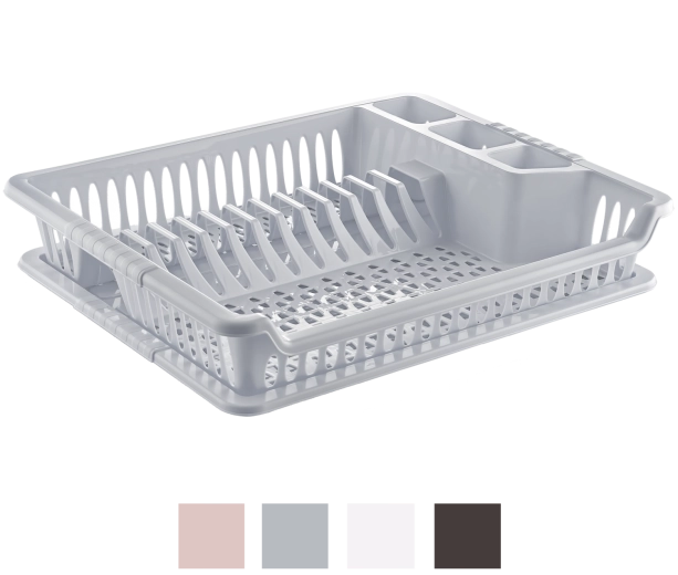 L’égouttoir à vaisselle VIOLET avec plateau pratique assure un séchage efficace sans gouttes sur le plan de travail. Grâce à ses dimensions compactes 37 × 46 × 8,5 cm, il s’adapte à la plupart des plans de cuisine tout en offrant suffisamment d’espace pour la vaisselle du quotidien. Le plastique résistant est facile à nettoyer et garantit une longue durée de vie.