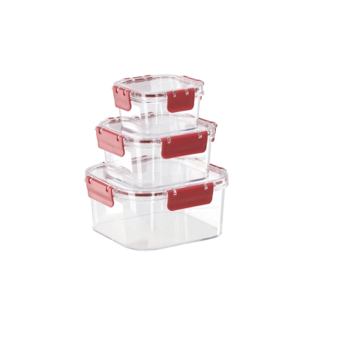 Pratique set de trois boîtes carrées de 0,4 l, 0,9 l et 1,8 l pour un rangement clair des aliments à la maison comme en déplacement. Grâce à leur conception transparente, vous voyez toujours le contenu, le plastique sans BPA garantit un contact sûr avec les aliments et les couvercles hermétiques conservent la fraîcheur plus longtemps. Les boîtes sont compatibles micro-ondes, congélateur et lave-vaisselle et leur forme carrée compacte économise de la place au réfrigérateur comme dans les placards.