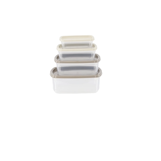 Pratique ensemble de quatre boîtes alimentaires rectangulaires de 0,25 l, 0,5 l, 0,75 l et 1,2 l pour un rangement malin en cuisine. Grâce au design transparent, vous voyez rapidement le contenu, les couvercles hermétiques aident à garder les aliments frais plus longtemps et la forme empilable fait gagner de la place dans le réfrigérateur comme dans le garde-manger.