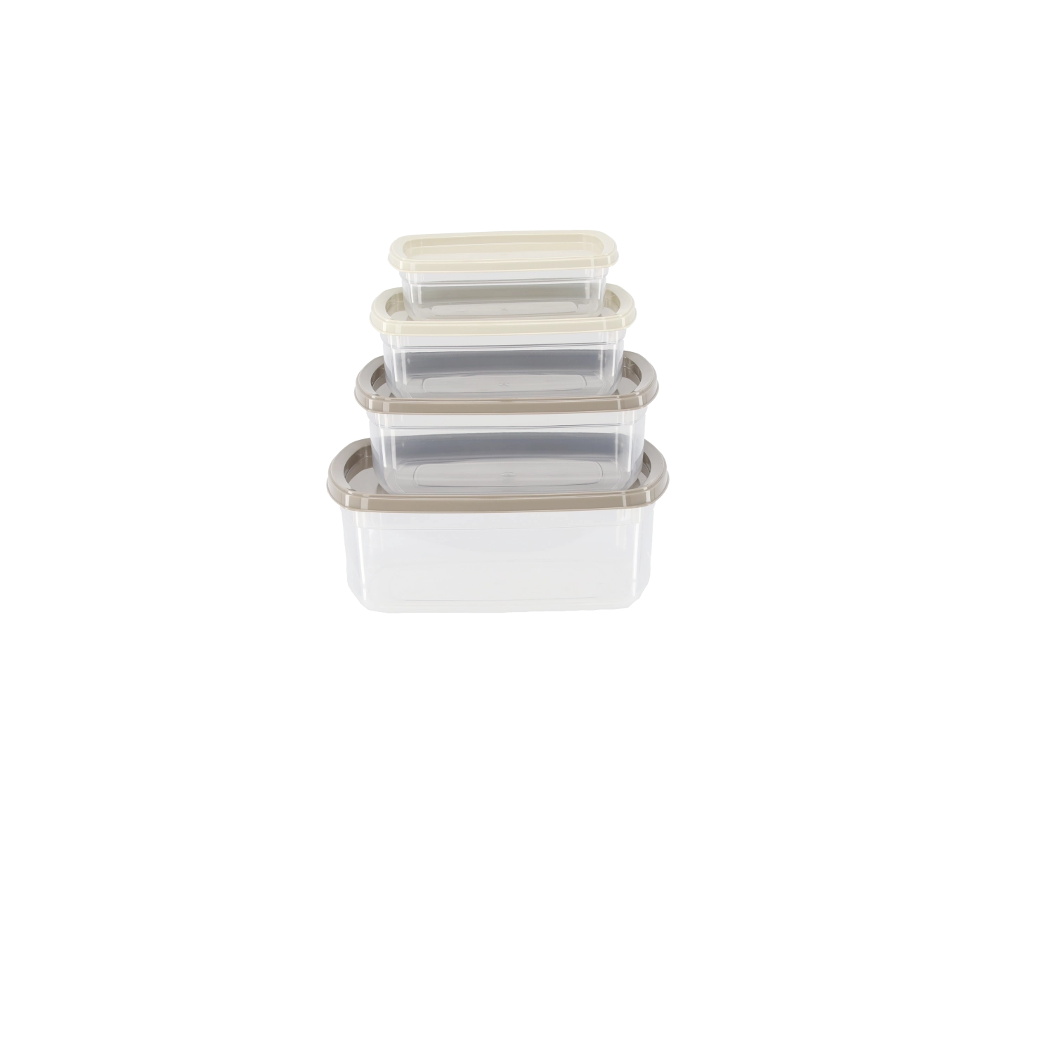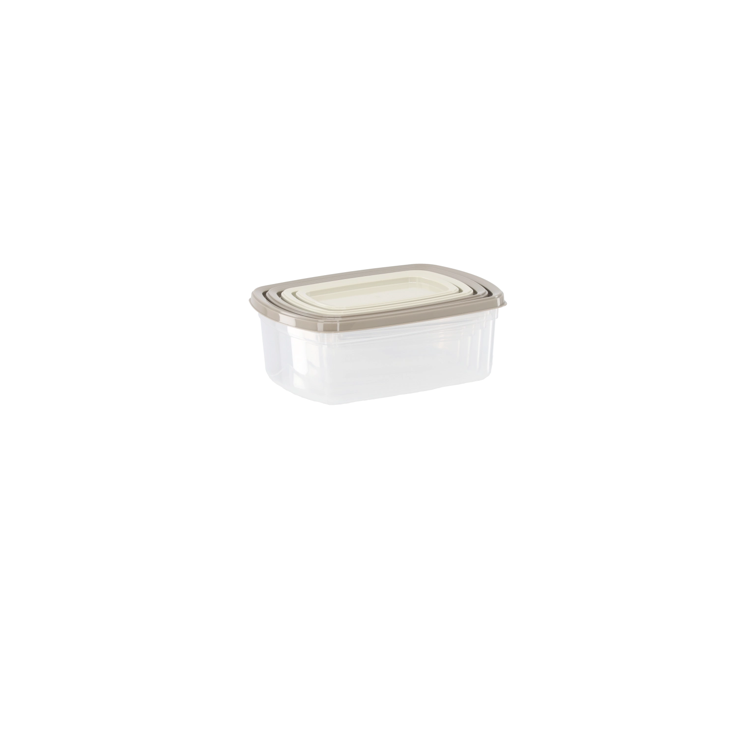 - Corps transparent, couvercles beige clair