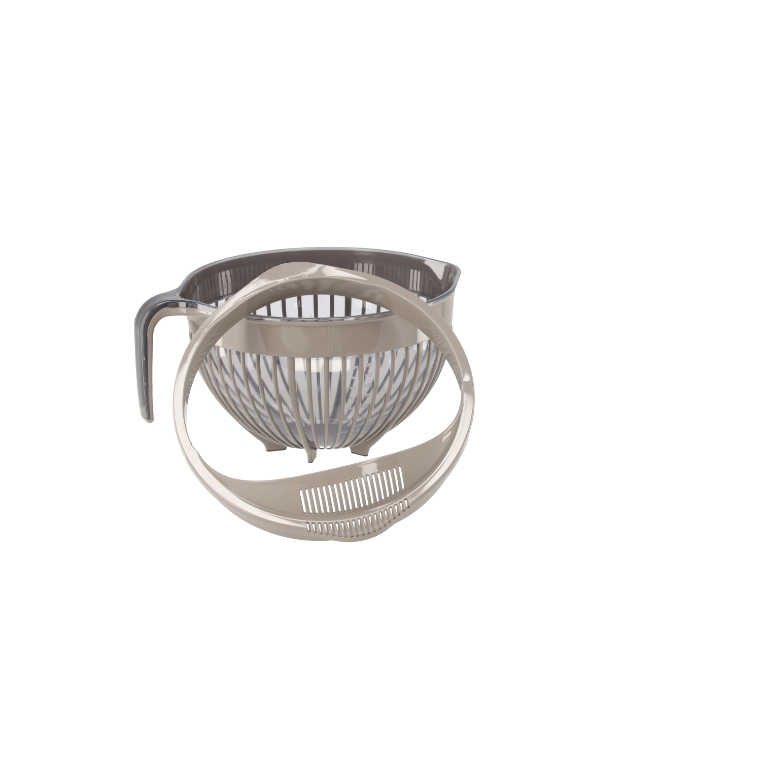 Ce bol multifonction avec égouttoir réunit deux accessoires indispensables en un seul. Grâce à sa forme étudiée et à ses ouvertures d’écoulement, vous rincez rapidement les ingrédients et les laissez s’égoutter en un instant – sans désordre ni étapes superflues. Le volume de 3 l est idéal pour la cuisine quotidienne et la préparation de salades.