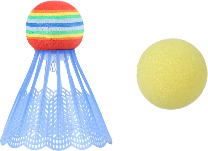 Le pack inclut également une balle en mousse de 45 mm de diamètre, plus légère et plus lente qu’un volant classique – idéale pour jouer en toute sécurité avec des enfants, s’entraîner à la technique et pour le jeu récréatif.