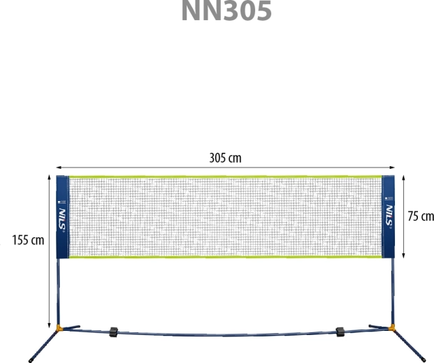 Le filet NILS NN305 est conçu pour le badminton récréatif et le jeu rapide partout. Les tubes en acier reliés par une barre transversale centrale assurent une stabilité fiable et la solidité de la structure. Grâce aux cordons de tension latérale, vous obtenez la bonne tension du maillage en un instant, sans réglages compliqués.