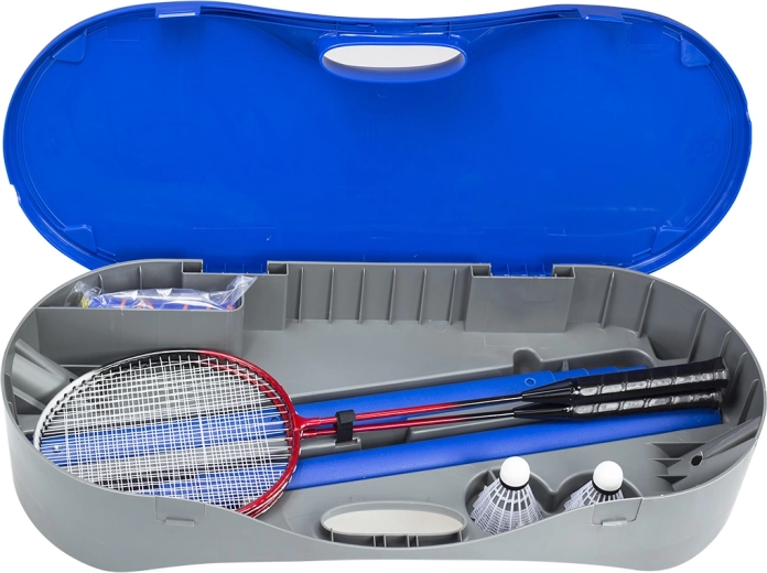 Grâce à sa structure légère en polypropylène et en fibres de polycarbonate, le système est facilement transportable tout en restant suffisamment robuste. Le filet en PE avec bordure en tissu Oxford résiste à une utilisation répétée en extérieur comme en intérieur. Le colis comprend également 2 raquettes de badminton et l’ensemble se range dans une mallette compacte de 71 × 30 × 13,5 cm.