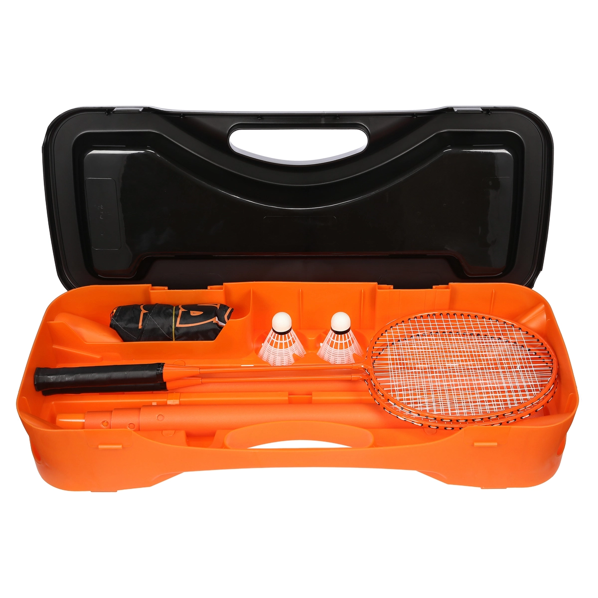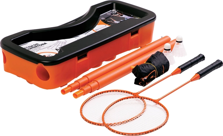 Un étui rigide en plastique avec compartiments garde le filet, les poteaux, les raquettes et les volants bien organisés et en sécurité. Facile à transporter et permet de préparer une partie n’importe où en un rien de temps.