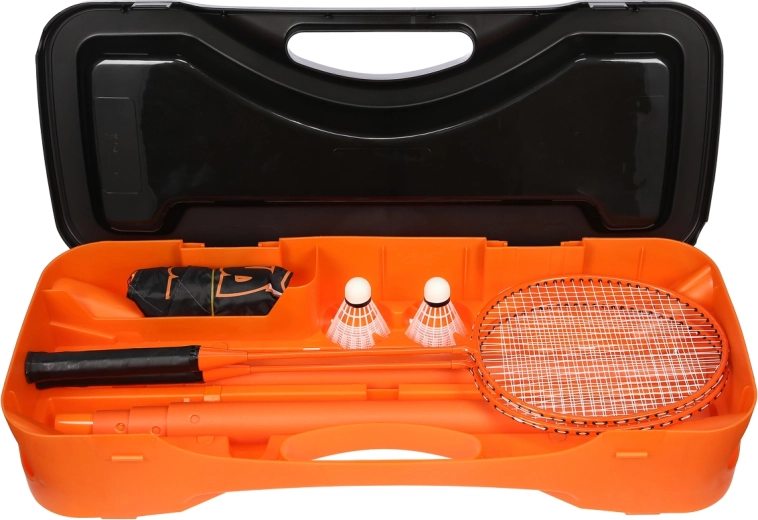 Le set comprend tout le nécessaire pour jouer immédiatement : deux raquettes, deux volants, un filet pliable et une mallette de transport robuste avec compartiments organisés. L’emballage compact (68 × 28,5 × 12 cm) se glisse facilement dans une voiture ou un espace de rangement domestique, afin que vous puissiez jouer au badminton dans le jardin, au parc ou en vacances.