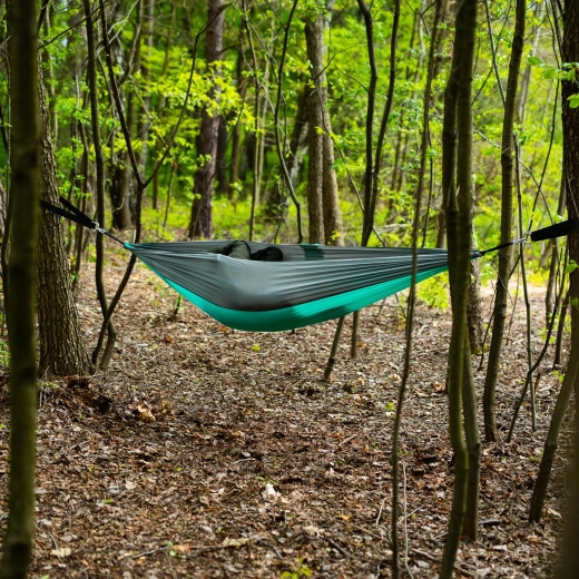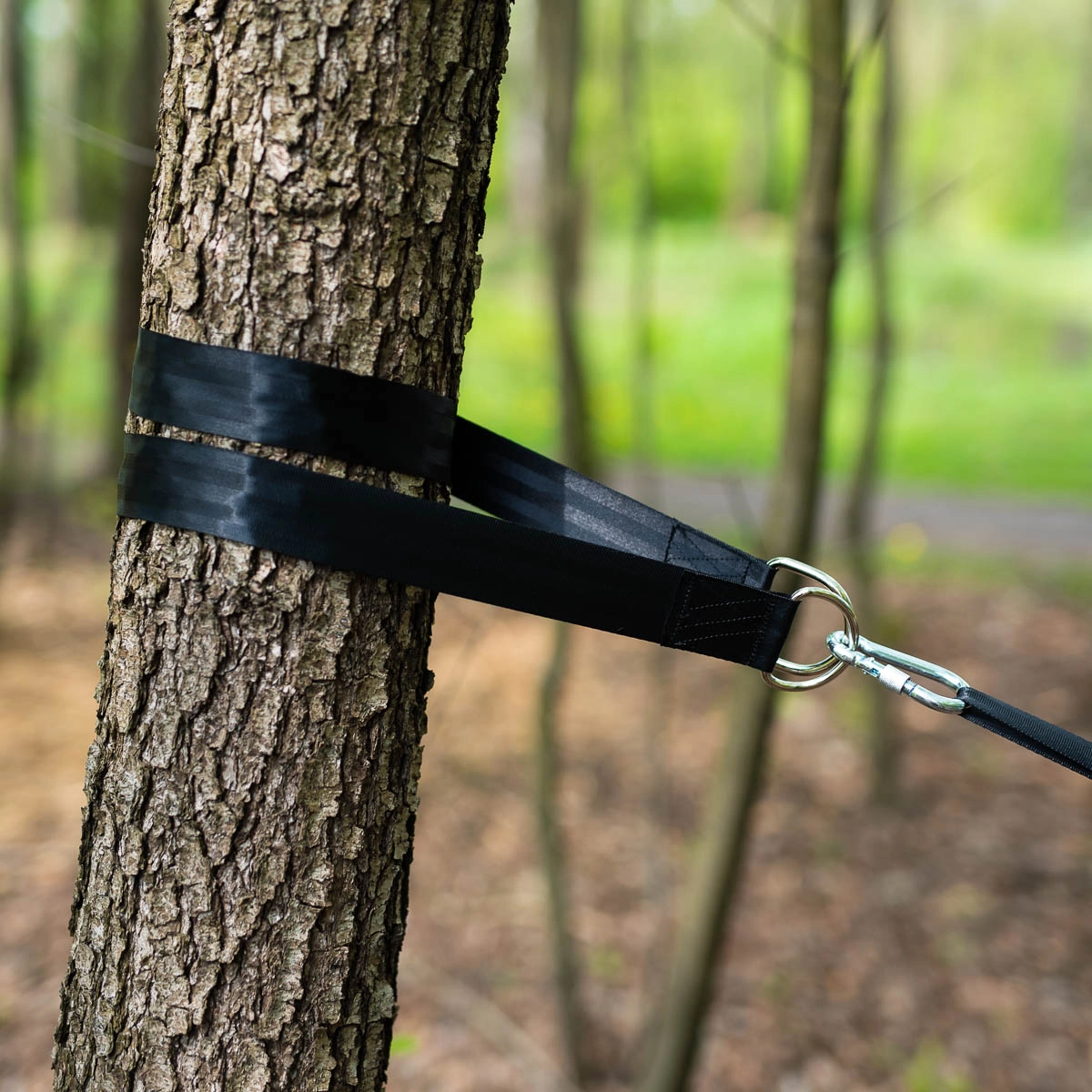 Enroulez simplement les sangles autour d’un arbre ou d’une poutre et, d’un seul clic de mousqueton, suspendez votre hamac, balançoire ou fauteuil suspendu.
