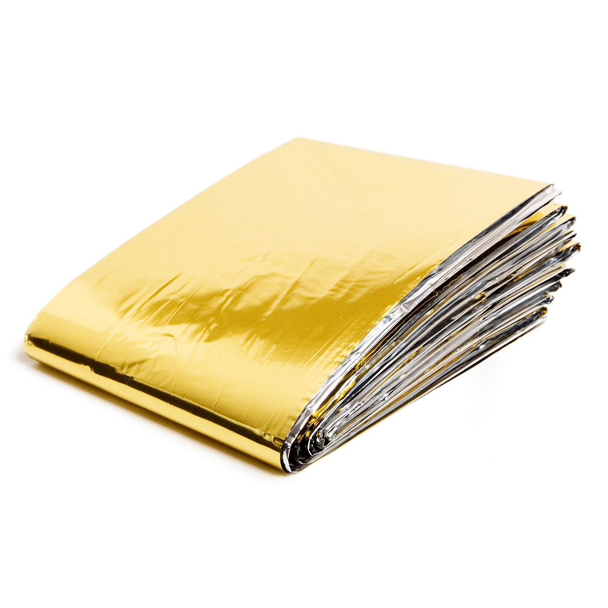 La construction réversible permet une utilisation rapide et adaptée à la situation : côté doré à l'extérieur (argenté à l'intérieur) pour conserver la chaleur et se protéger du froid ; côté argenté à l'extérieur (doré à l'intérieur) pour aider à refroidir en cas de surchauffe ou d'insolation. Le matériau PET résistant avec revêtement aluminium est léger, imperméable et se glisse facilement dans un sac à dos ou une trousse de secours.