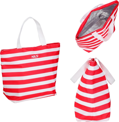 Grâce au compartiment principal spacieux, vous rangez aisément bouteilles, collations et boîtes. La large ouverture supérieure facilite l’accès au contenu, tandis que le design rayé intemporel en rouge et blanc apporte du style à votre équipement d’été.