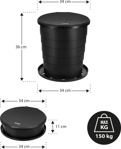La toilette portable pliante NILS Camp se distingue par ses dimensions minimales une fois pliée (hauteur seulement 11 cm), ce qui permet de la ranger facilement dans un coffre, un sac à dos ou un garage. Une fois déployée, elle offre une assise confortable de 34 × 36 cm en matériaux résistants ABS et PP, avec une capacité de charge allant jusqu’à 150 kg. Grâce au système à sec, elle s’entretient facilement et reste hygiéniquement propre et est immédiatement prête à l’emploi.