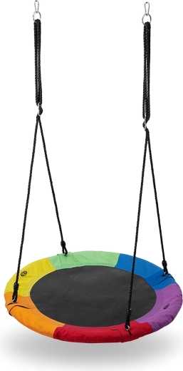 Balancelle nid ronde NILS Camp 90 cm, bord arc-en-ciel