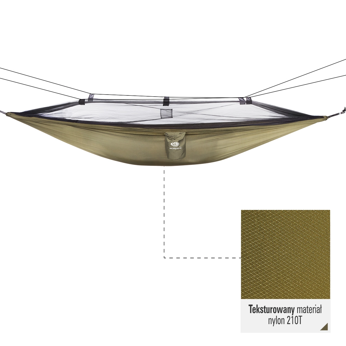 La moustiquaire intégrée avec fermeture éclair et tension en quatre points crée une barrière efficace qui vous protège des moustiques et autres insectes.