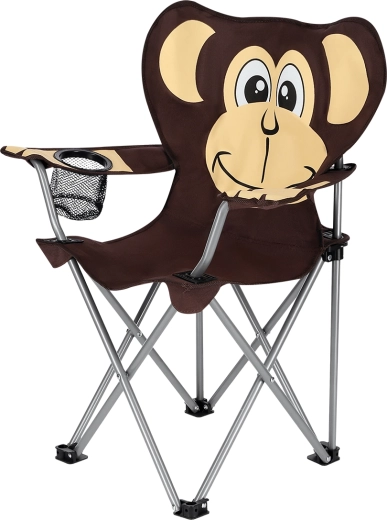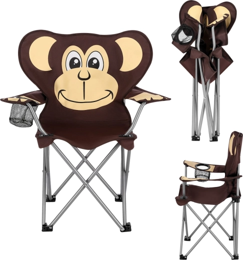 Chaise de camping pour enfants légère et stable avec motif de singe, idéale pour les sorties au bord de l’eau, la pêche et les festivals. Elle offre une structure résistante, une capacité de charge de 50 kg, des accoudoirs réglables et un porte-gobelet pratique. Grâce à son pliage rapide et à sa housse de transport avec sangle, elle est idéale en voyage.