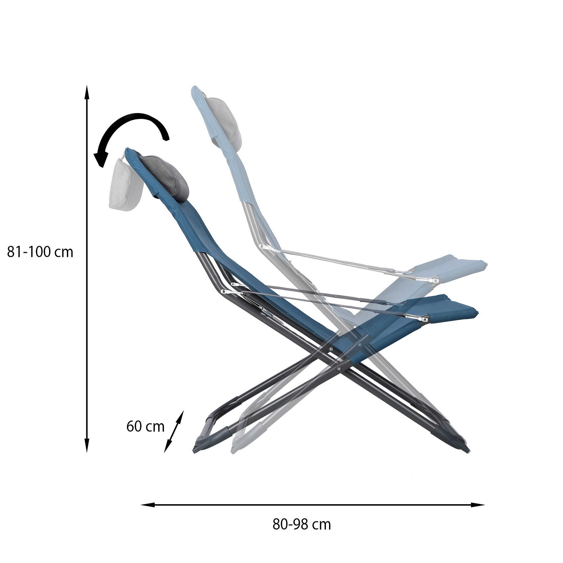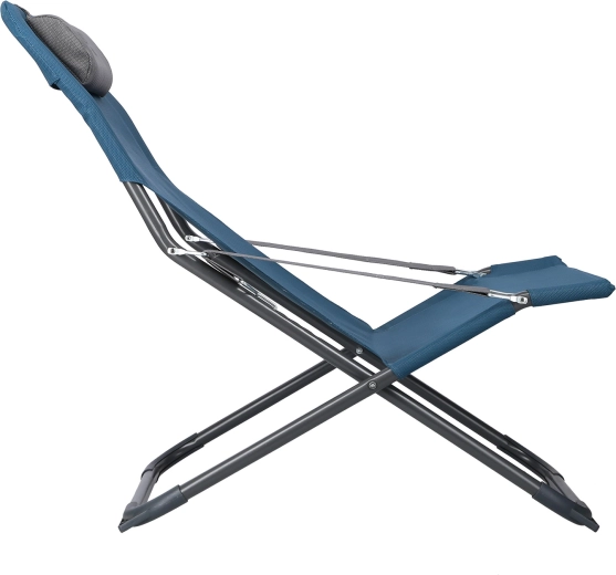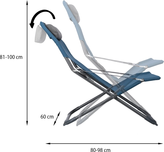 Des accoudoirs pratiques et un coussin amovible augmentent le confort lors de périodes assises ou allongées plus longues. Grâce à son pliage rapide et à ses dimensions compactes une fois repliée, la chaise longue se transporte et se range aisément dans une voiture ou un camping-car. Les patins antidérapants assurent la stabilité sur différents types de surfaces, et la charge maximale de 100 kg garantit une utilisation sûre.