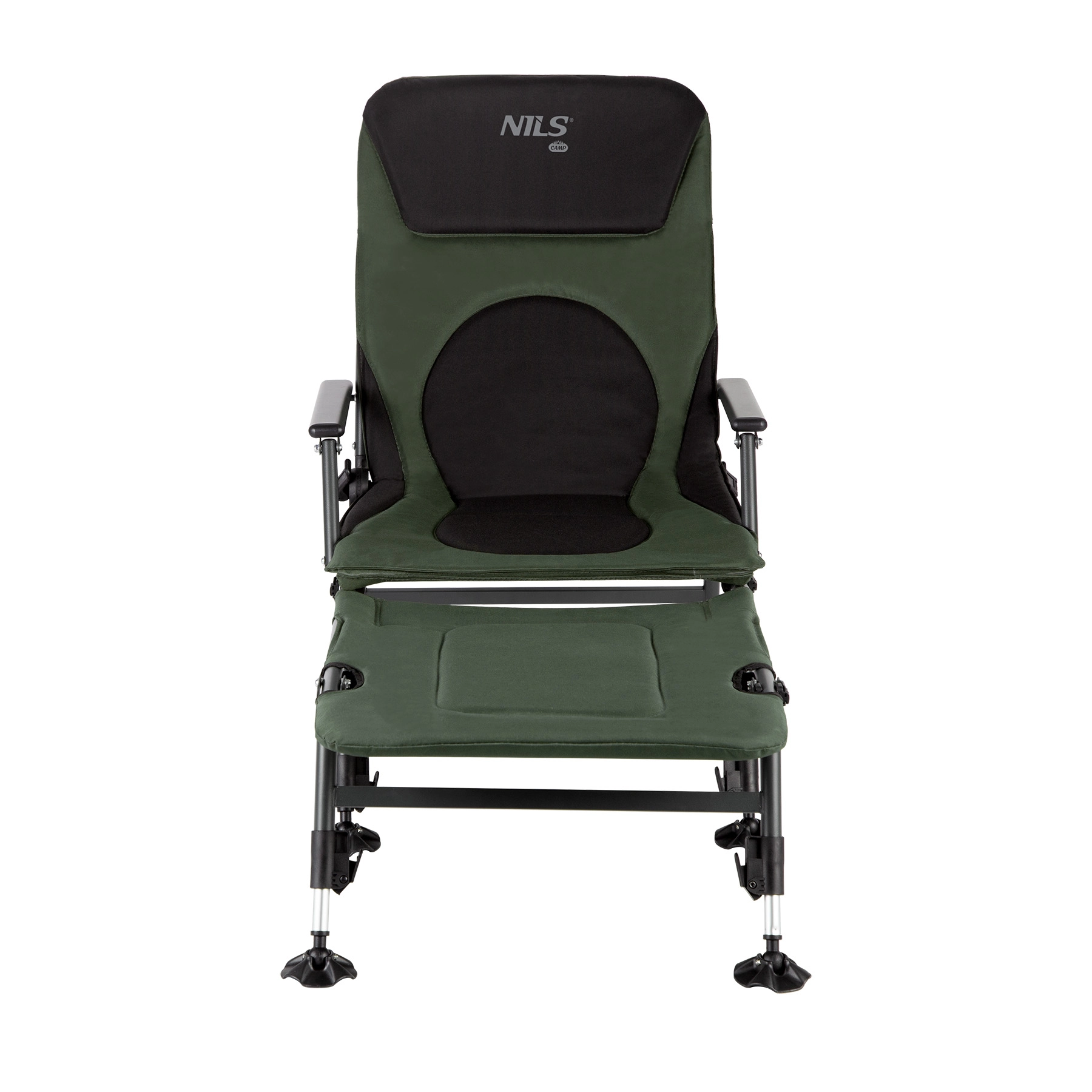 Profitez d’un confort maximal au bord de l’eau avec le fauteuil de pêche avec repose‑pieds NILS CAMP NC1802. Sa structure résistante, une housse rembourrée en Oxford 600D et un réglage en continu jusqu’à la position détente assurent un confort optimal sur tout type de terrain. Grâce aux pieds réglables avec patins élargis, le fauteuil reste stable même sur une berge irrégulière et le cadre en acier supportant jusqu’à 180 kg garantit une longue durée de vie. Il se plie et se transporte facilement, idéal pour la pêche, le camping et la détente en plein air.