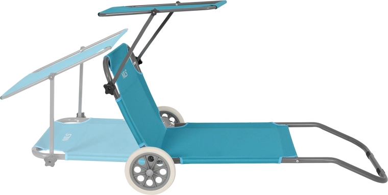Profitez du confort partout avec la chaise longue de plage légère et résistante NILS Camp NC3307. Son cadre en acier stable, une capote pare-soleil réglable, des roulettes de transport pour un déplacement facile et une revêtement 600D avec couche PE en font un choix idéal pour la plage, la piscine, le camping et le jardin.