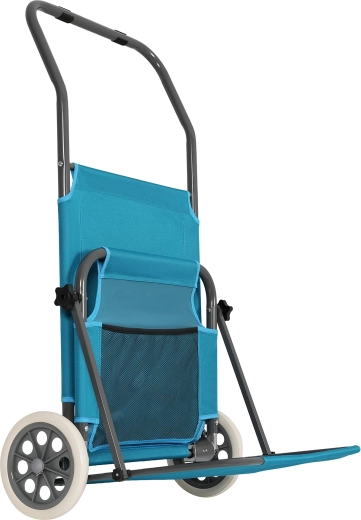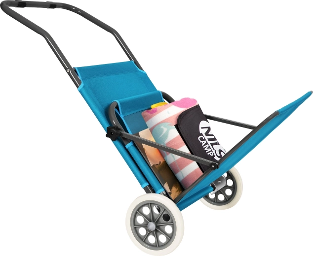 Soulevez la chaise longue à l’avant et tirez-la comme un chariot. Les grandes roues gèrent le sable, l’herbe et les irrégularités.