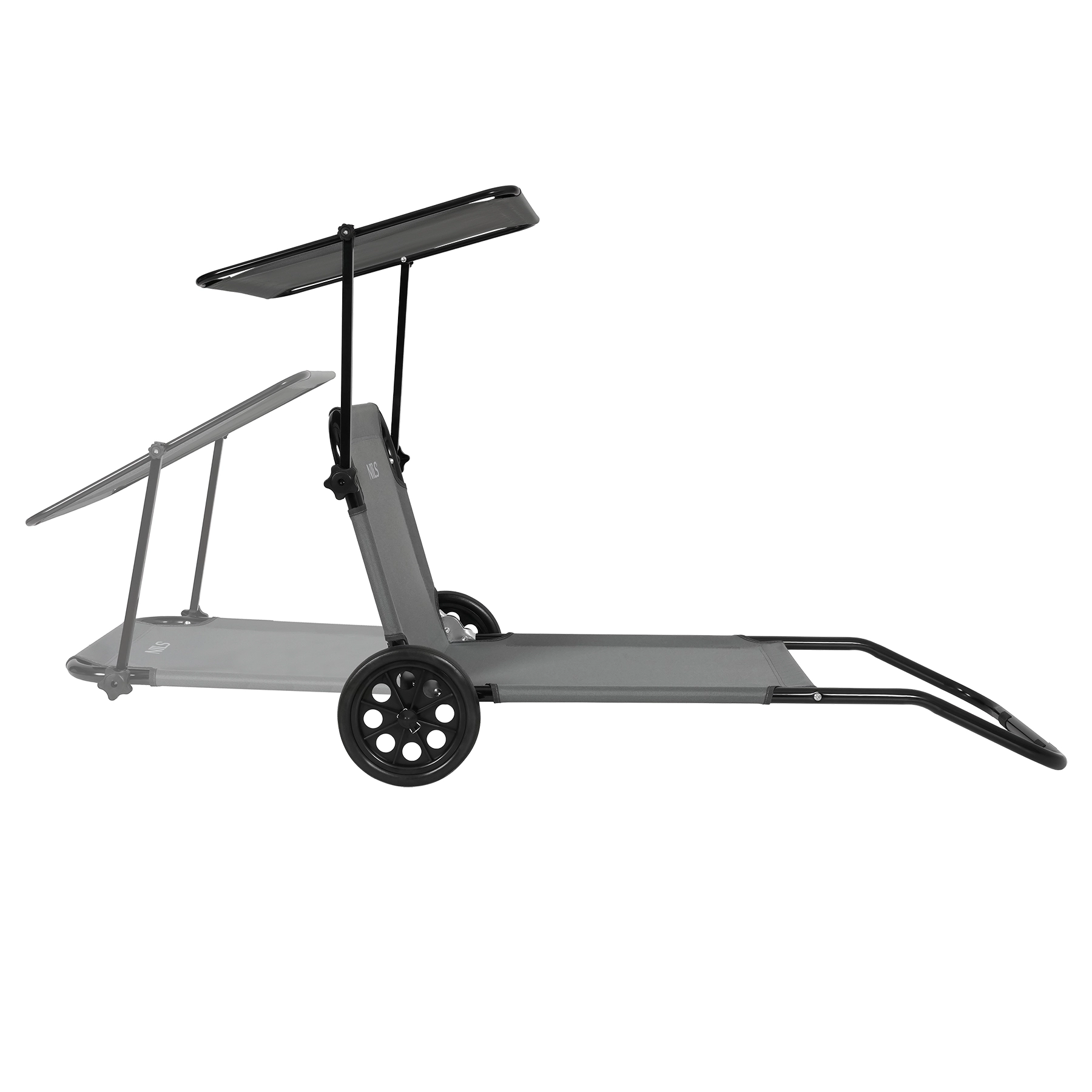 Deux grandes roues permettent de tirer la chaise longue comme une valise. Idéale pour la plage, le camping et le jardin – sans soulever et sans démontage.