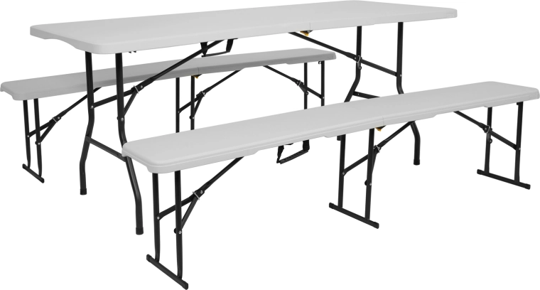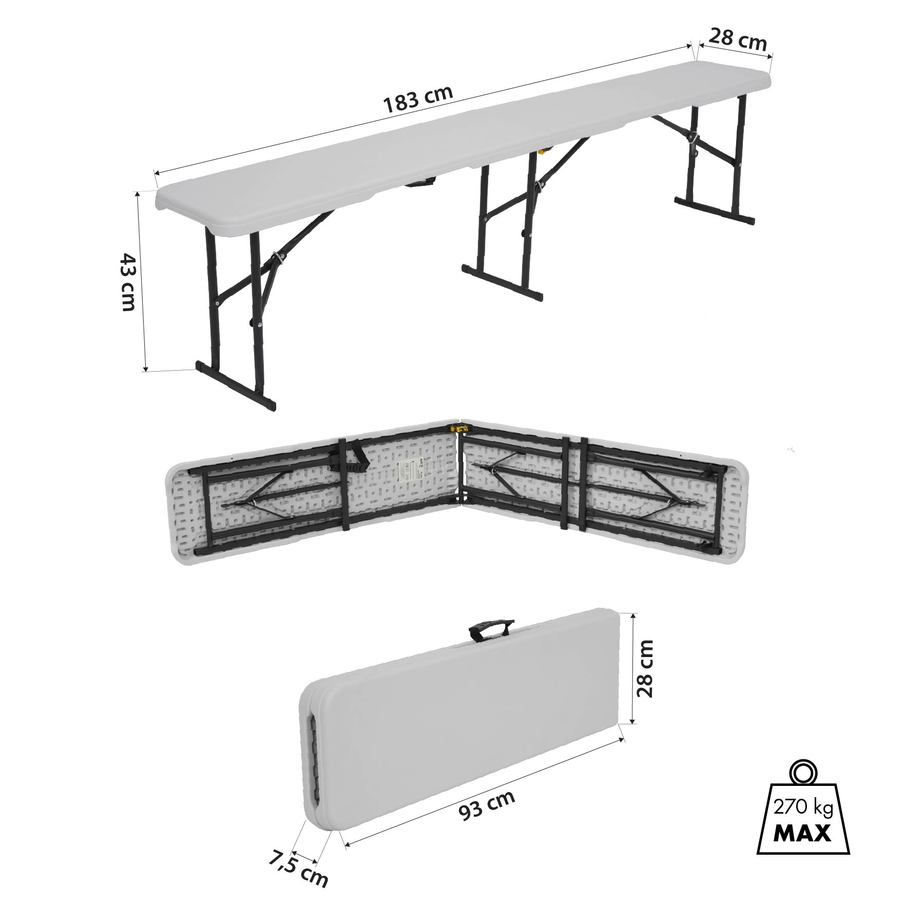 Le banc se plie en un format compact en quelques instants, avec une poignée pratique. Idéal pour les déplacements, la voiture et un rangement rapide.