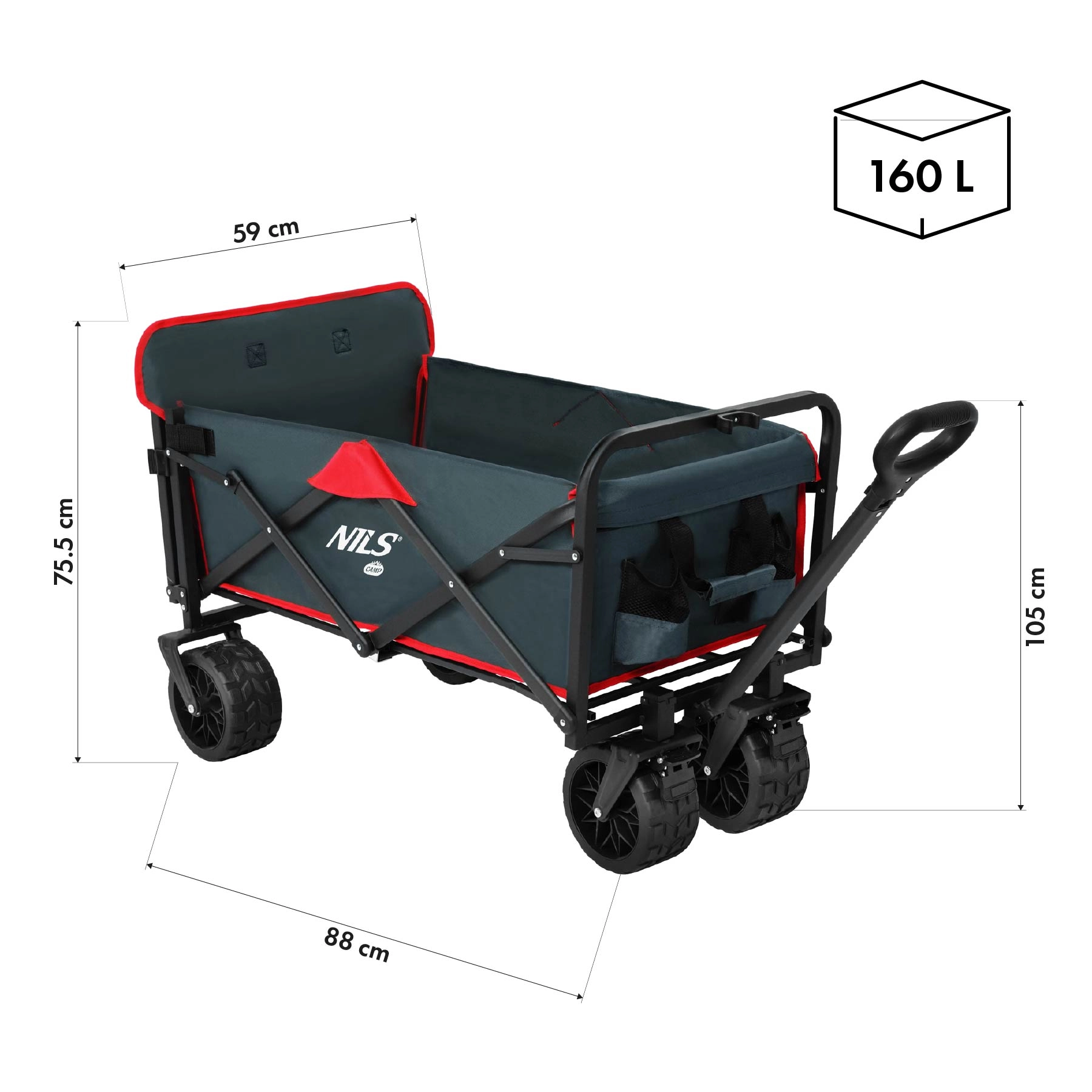 Le chariot NILS Camp NC2601 est un assistant polyvalent pour la route, le camping et la plage. La structure stable en acier avec revêtement par poudre résiste à la corrosion et aux charges, tandis que la benne en toile Oxford 600D supporte les conditions exigeantes. Grâce à son volume de 160 litres et sa capacité de charge de 100 kg, vous transportez aisément l’équipement pour un pique-nique, le sport ou un week-end.