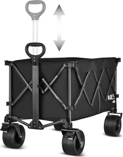 Les grandes roues en polypropylène et PVC (18 × 10 cm) offrent stabilité et mouvement fluide sur l’asphalte, l’herbe et le sable. Grâce à la poignée réglable (74–90 cm), vous adaptez facilement le chariot à votre taille. Après utilisation, il se plie en quelques instants à des dimensions compactes pour ne pas prendre de place dans la voiture ni à la maison.
