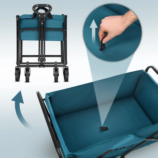 Pratique, ce chariot de camping turquoise est idéal pour la plage, les pique-niques, le camping et les courses du quotidien. Grâce à son système de pliage rapide, il est prêt à l’emploi en un instant et se range facilement dans le coffre de la voiture ou dans un placard après usage. Son cadre en acier solide avec peinture thermolaquée et la toile résistante Oxford 600D avec PVC garantissent une longue durée de vie et la protection de vos affaires transportées.