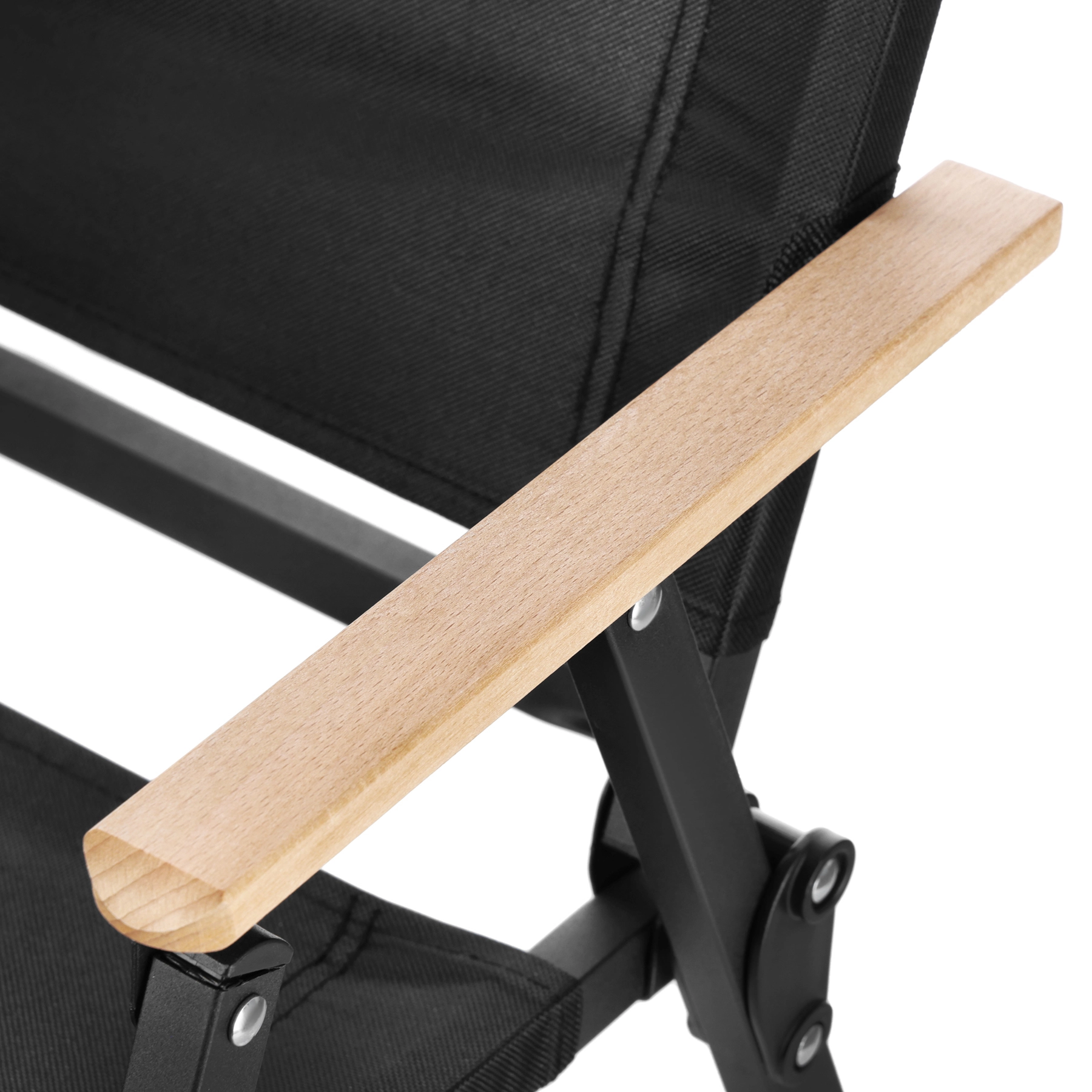 Les accoudoirs en bois améliorent le confort et l’esthétique. Le mécanisme permet un pliage rapide en dimensions compactes pour un rangement aisé.