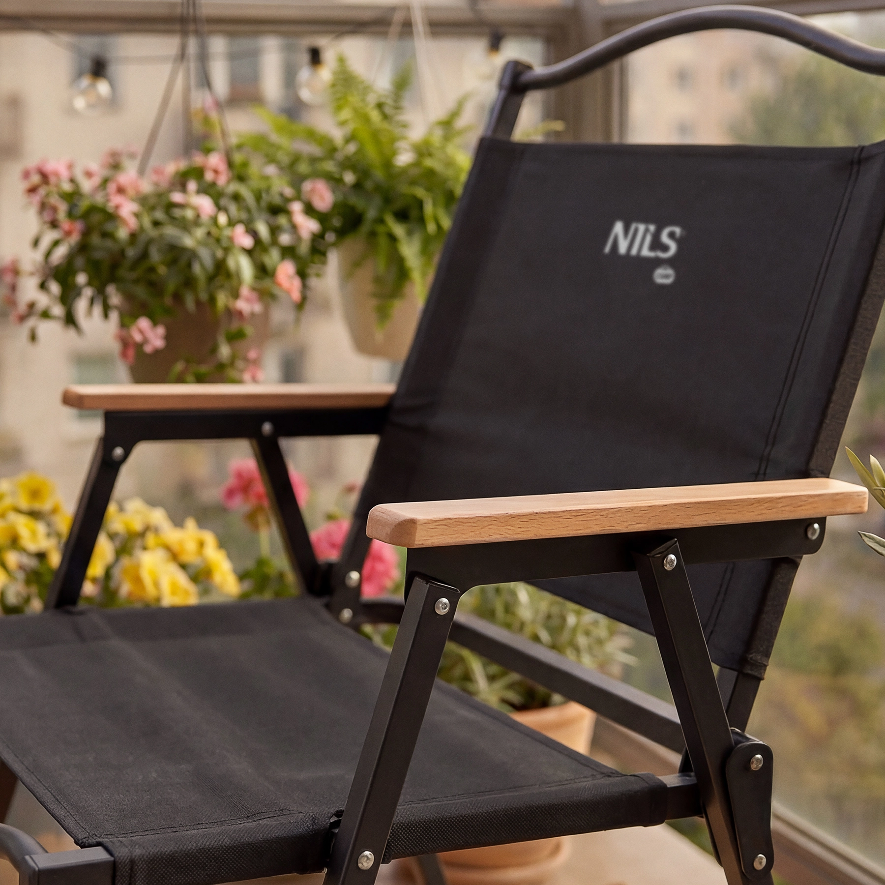 Profitez du confort partout, à la maison comme en pleine nature. Le fauteuil de camping pliant NILS Camp associe un cadre en acier stable avec revêtement poudré pour une longue durée de vie, une housse résistante en polyester 900D contre l’abrasion et les déchirures, et des accoudoirs en bois élégants pour plus de confort.