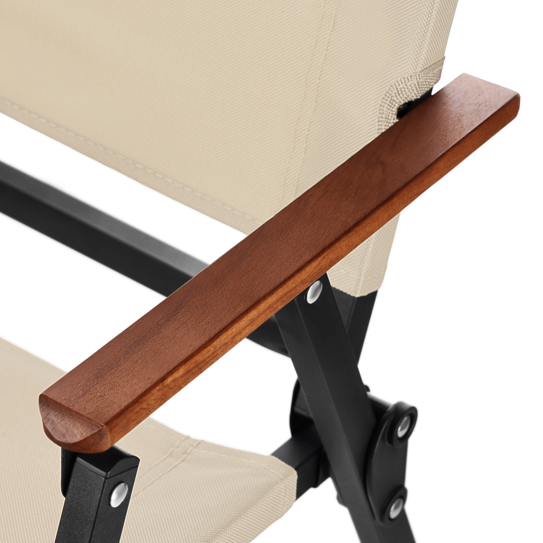 Les accoudoirs en bois apportent au fauteuil une allure élégante et un contact agréable pour se détendre à la maison comme en plein air.