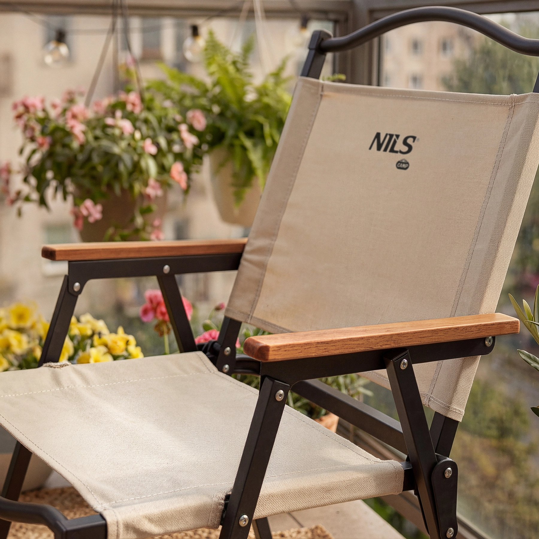 Profitez du confort partout — le fauteuil de camping pliant NILS Camp allie stabilité, design élégant et facilité de transport. Le cadre en acier avec revêtement par poudre garantit une longue durée de vie et une apparence soignée, tandis que les accoudoirs en bois ajoutent une touche naturelle et une prise en main agréable.