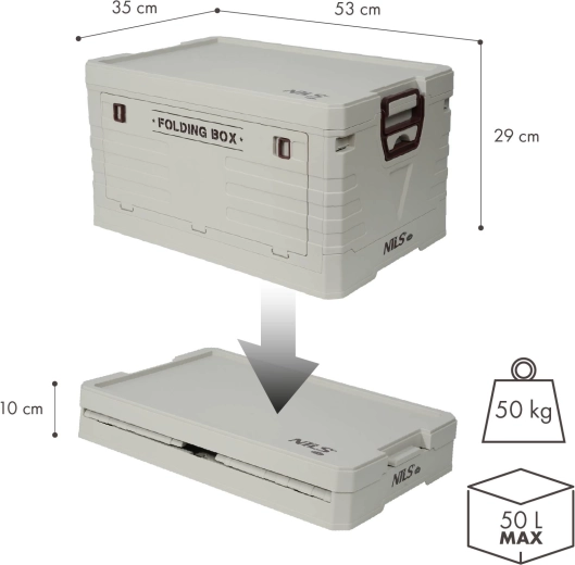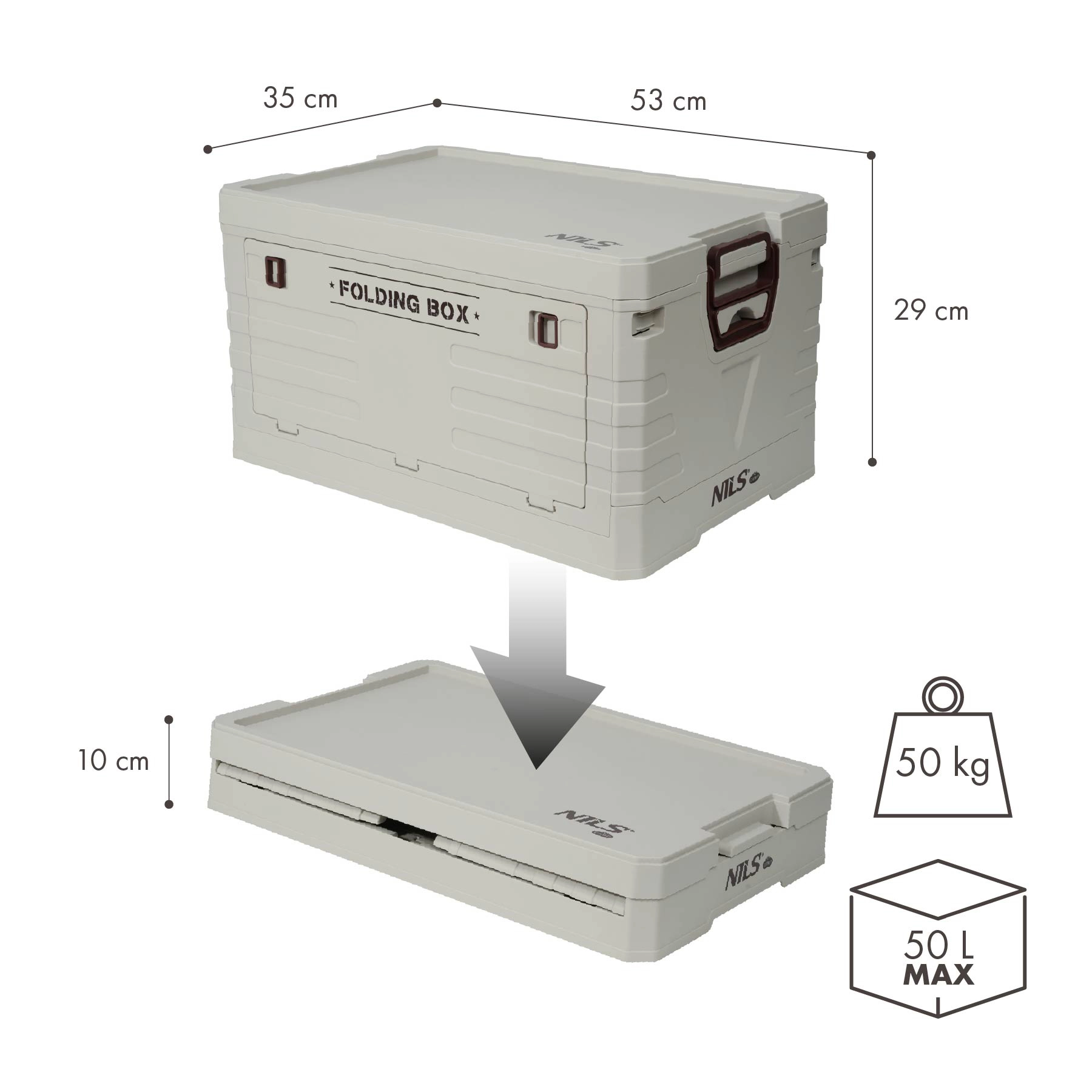 La boîte de rangement pliable avec couvercle NILS Camp est idéale pour la voiture, le camping, l’atelier et la maison. Elle offre un grand volume de 50 l, une fabrication résistante en PP et un pliage rapide à une hauteur de seulement 10 cm pour économiser de l’espace. Grâce à son couvercle à clip et à ses poignées latérales, le contenu est en sécurité et la manipulation est facile.
