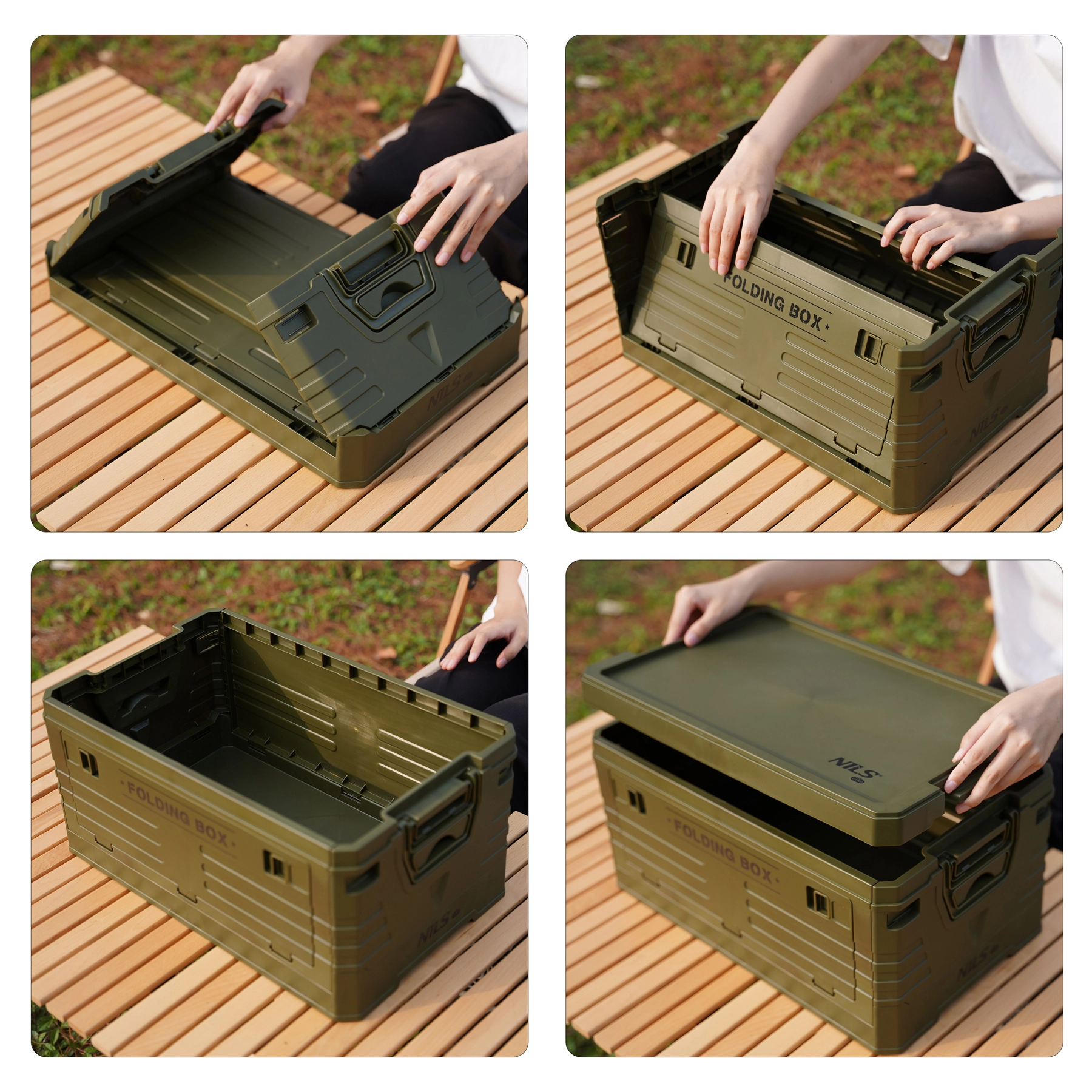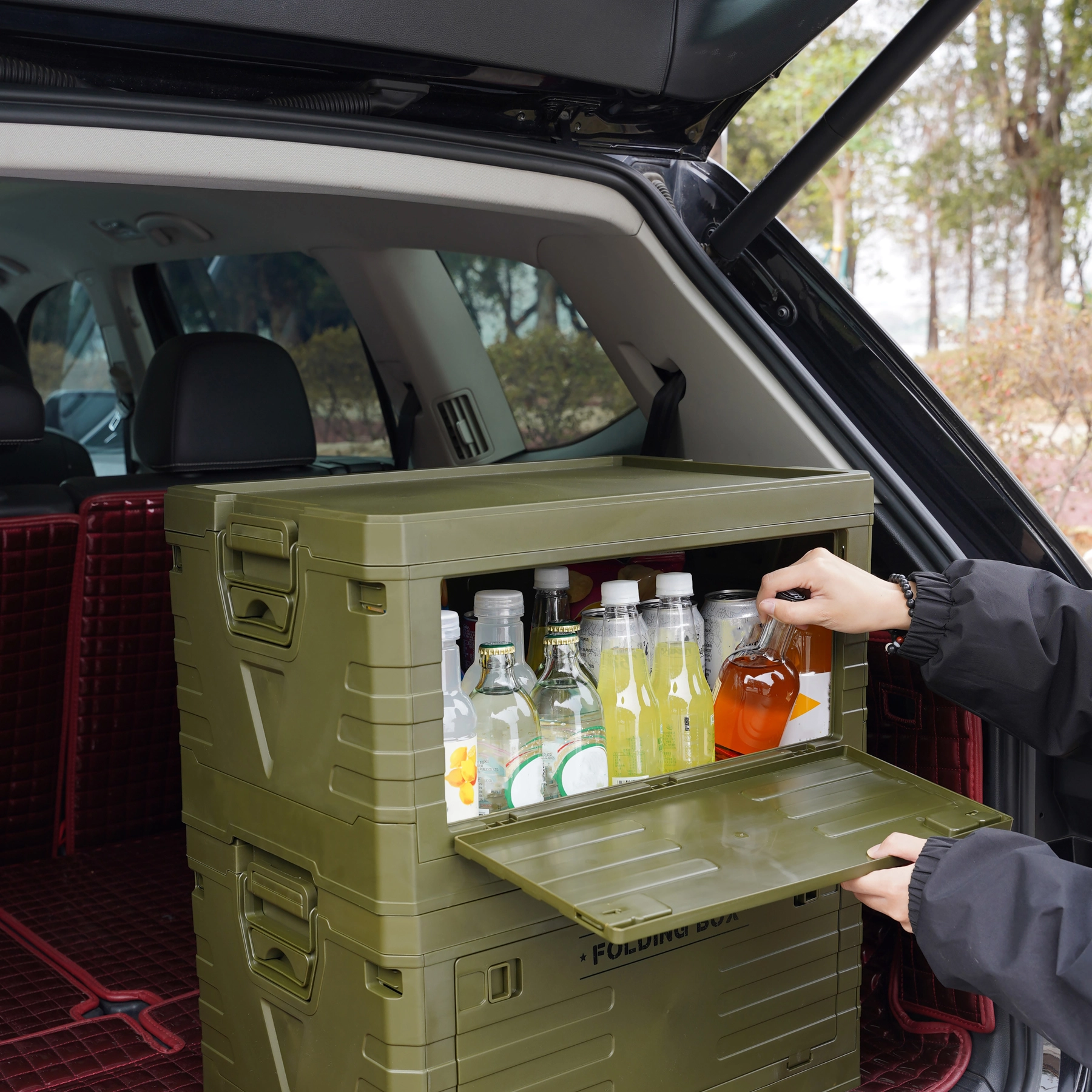 La boîte se plie en quelques instants jusqu’à une hauteur d’environ 10 cm. Idéale pour le rangement dans la voiture, à la maison et en voyage – lorsqu’elle n’est pas utilisée, elle n’occupe presque aucun espace.