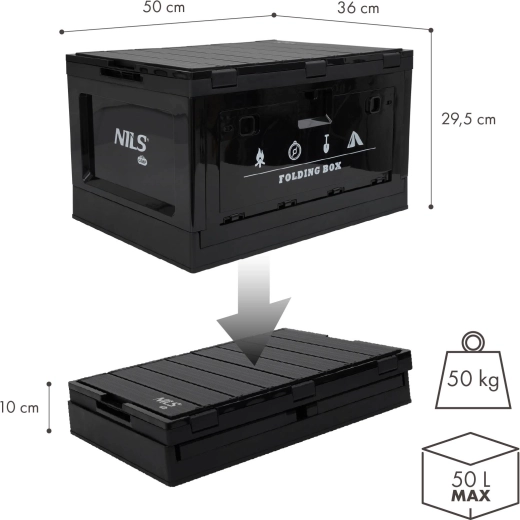 La boîte se plie à une hauteur de seulement 10 cm. Parfaite pour la voiture, l’armoire ou la tente – elle se déplie en quelques secondes et s’utilise aussitôt.