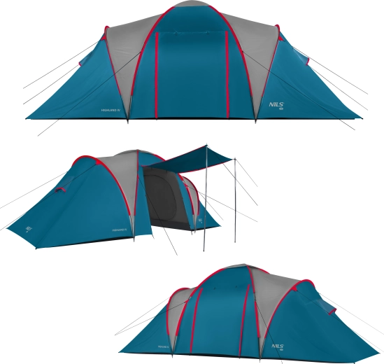 NILS Camp Highland IV est une tente familiale fiable conçue pour camper confortablement du printemps à l’automne. Deux chambres doubles séparées et un grand vestibule avec tapis de sol intégré offrent suffisamment d’espace pour dormir et ranger votre équipement. Haute résistance à la pluie (4000 mm H2O), coutures thermosoudées et structure stable en fibre de verre protègent par mauvais temps.