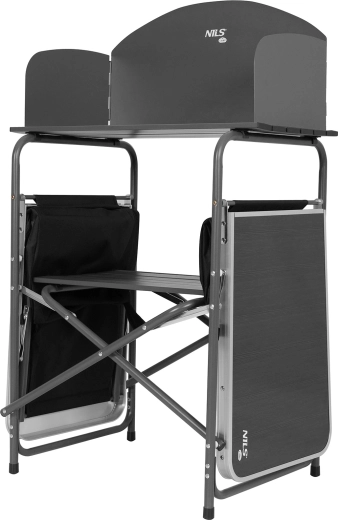 Vous recherchez une solution réfléchie et durable pour cuisiner en extérieur ? L’armoire de cuisine de camping NILS Camp combine ergonomie, ordre et confort dans un ensemble mobile compact. Le plan de travail supérieur en lattes d’aluminium avec pare-vent est idéal pour un réchaud de camping et la préparation des ingrédients, tandis que deux placards en tissu dotés d’étagères rigides en MDF gardent vaisselle et provisions à portée de main et bien rangées.