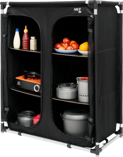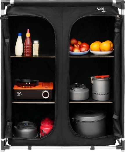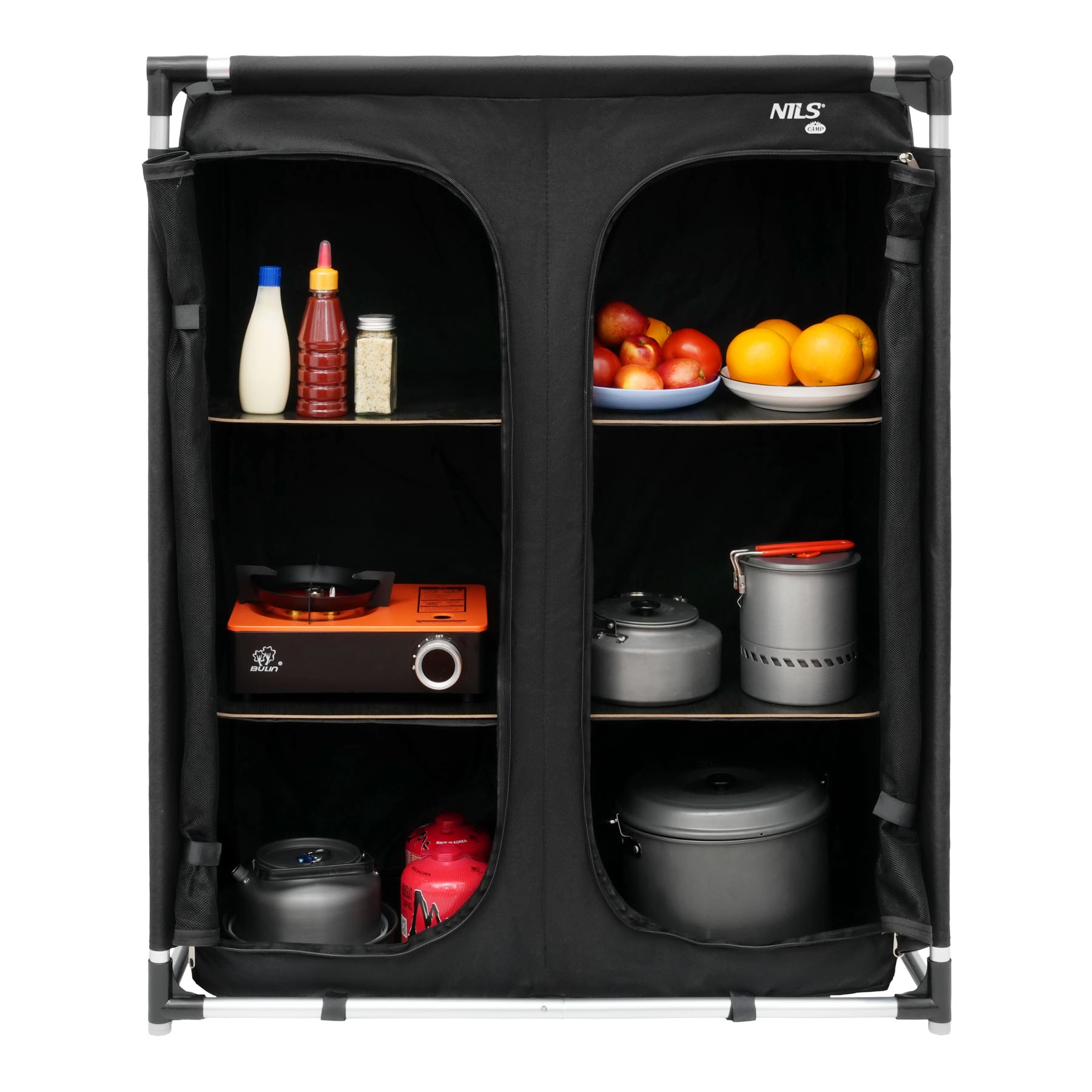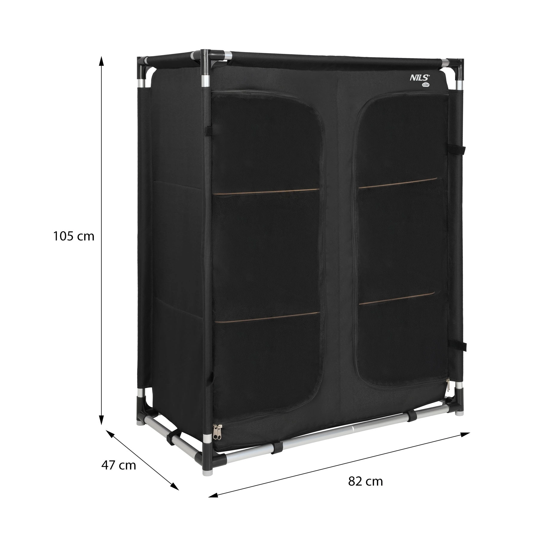 L’armoire offre trois niveaux de rangement avec des étagères spacieuses et des plateaux rigides pour une stabilité même sous une charge plus importante. Les panneaux avant en maille respirante avec fermeture éclair protègent le contenu des insectes tout en assurant une ventilation optimale, évitant ainsi l’humidité et les odeurs indésirables.