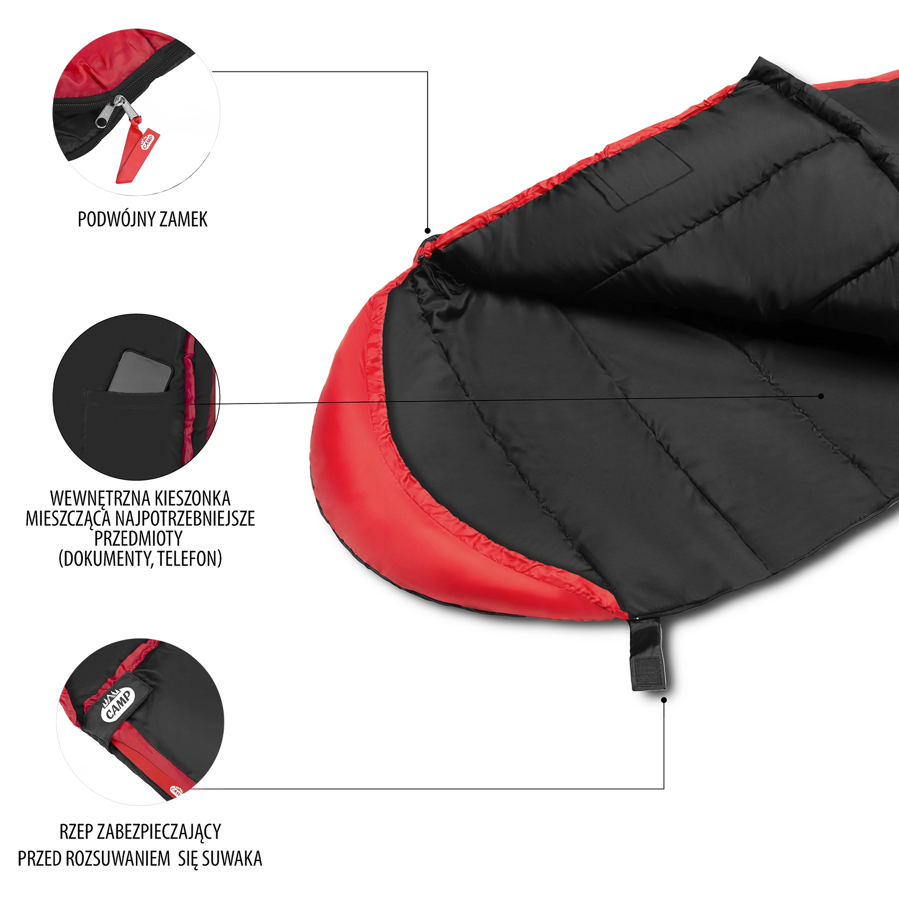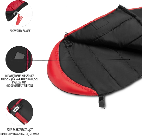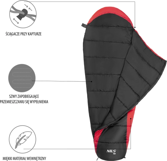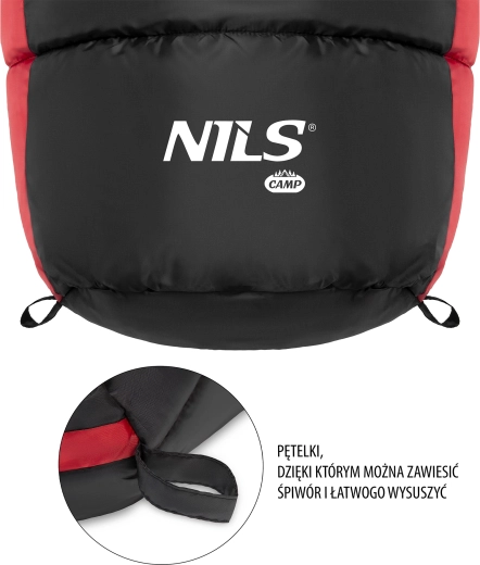 Sac de couchage momie NILS Camp, noir‑rouge