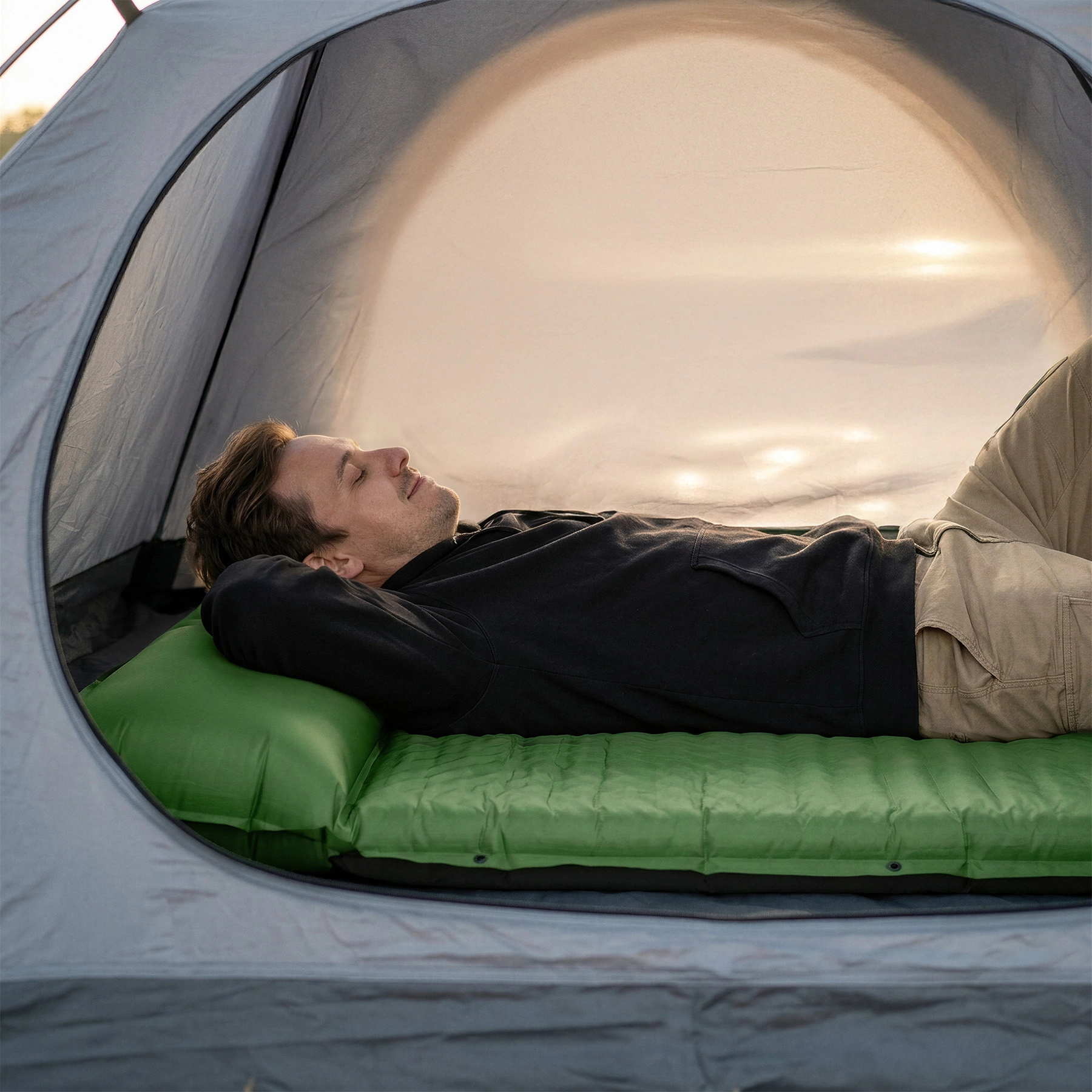 Profitez du confort à deux, partout en voyage. Ce matelas autogonflant spacieux se remplit d’air tout seul après l’ouverture de la valve et est prêt à l’emploi en un rien de temps. Sa largeur de 130 cm offre suffisamment de place aux couples comme aux familles, tandis que l’oreiller intégré améliore le confort sans ajouter d’équipement supplémentaire.