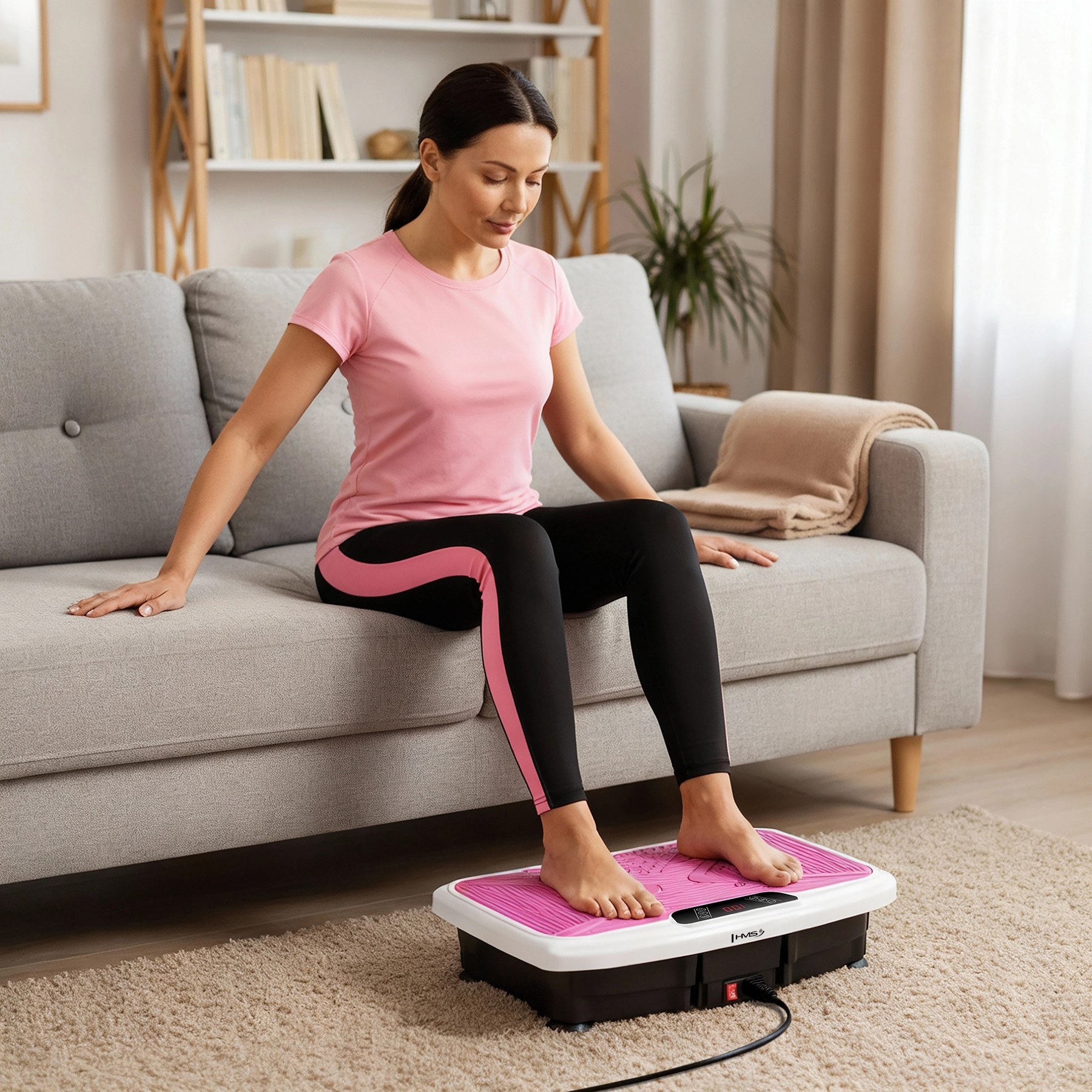 HMS SVP45 est une plateforme vibrante compacte conçue pour le renforcement, la détente et l’amélioration de la condition physique à la maison. Les vibrations ciblées activent les muscles profonds stabilisateurs et augmentent l’efficacité de chaque exercice. Grâce à une plage de vitesses de 1 à 120, vous adaptez facilement l’intensité – de la stimulation douce à l’entraînement dynamique.