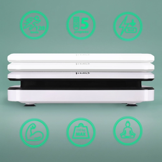 La HMS SVP09 combine des vibrations verticales efficaces sur l’axe haut–bas avec une amplitude jusqu’à 2,8 cm, activant même les groupes musculaires profonds. La large plage de 120 niveaux de vitesse et les 5 programmes préréglés vous permettent d’adapter l’entraînement à la réduction de la graisse, au renforcement musculaire et à l’amélioration de la circulation. Le contrôle est intuitif via un panneau clair ou la télécommande.