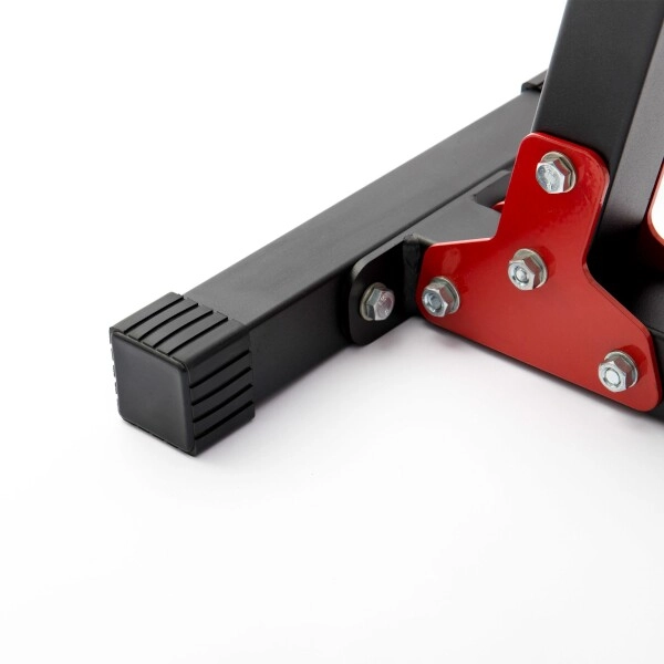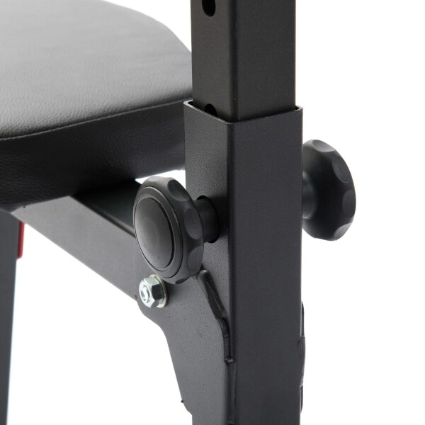 Le rembourrage ergonomique en similicuir de qualité avec double couture offre du confort même lors d’entraînements exigeants. Les crochets de repose avec une épaisse protection en caoutchouc réduisent le bruit et évitent les rayures sur la barre comme sur la structure. Le revêtement peinture époxy protège le cadre contre l’usure et la corrosion, et les pieds en caoutchouc maintiennent le banc bien en place sans abîmer le sol.