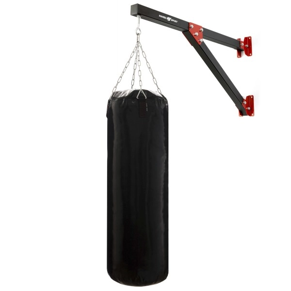 Le bras avec anneau de suspension est déporté de 100 cm du mur, ce qui assure une amplitude de mouvement optimale autour du sac et minimise le risque d’impact contre la paroi. Les huit trous de montage permettent une fixation solide et sûre selon le type de support. Le matériel de fixation n’est pas inclus.