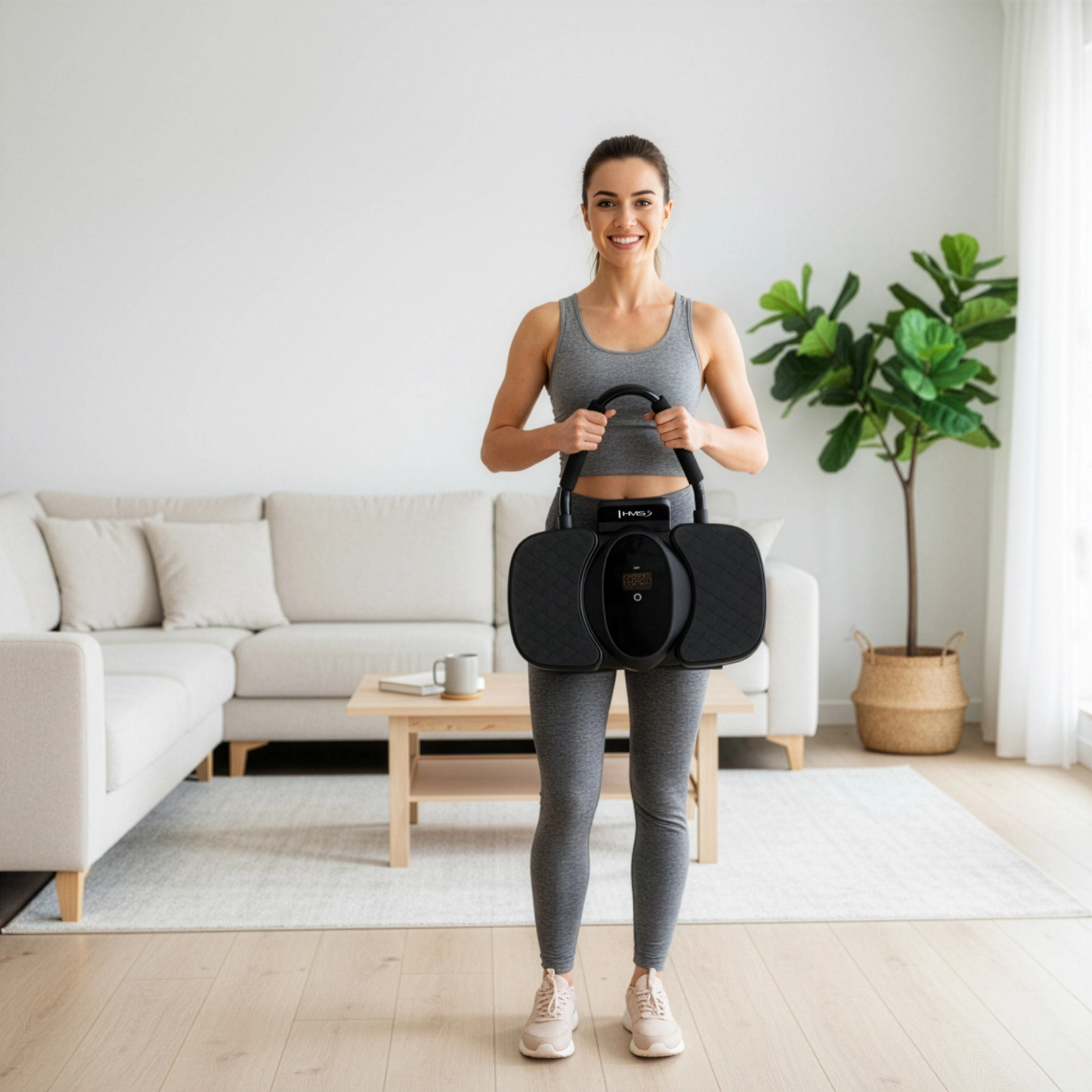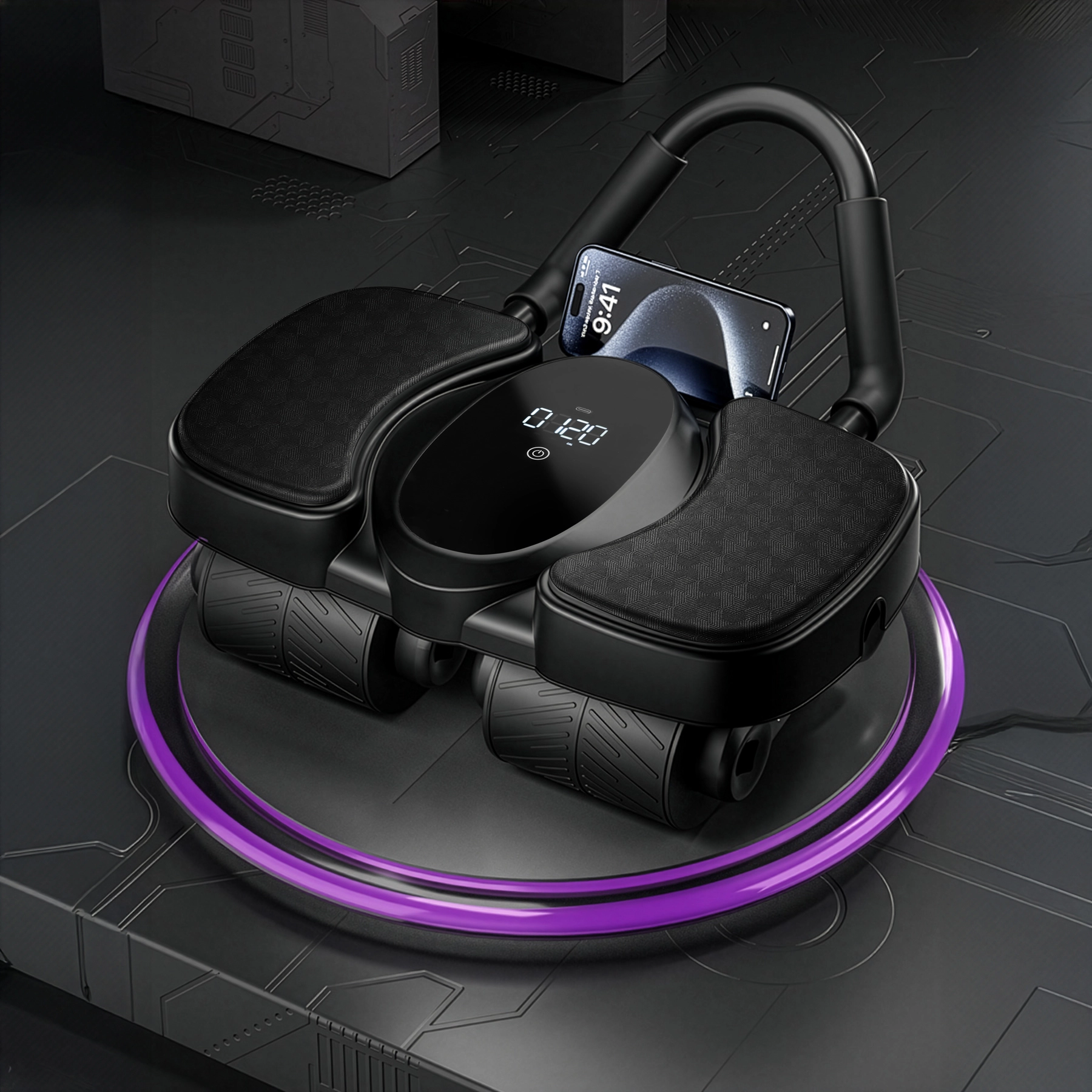Pour un entraînement confortable, on retrouve de larges repose-coudes et un tapis de genoux doux. L’écran LCD affiche clairement le temps, les calories et le nombre de répétitions, tandis que le support de téléphone permet de suivre des plans d’entraînement ou des vidéos. Grâce au montage rapide par clips, il est prêt à l’emploi en un instant et l’USB‑C assure une recharge facile.