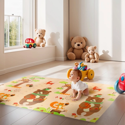 Le tapis NILS Fun Forest constitue une excellente base pour le jeu quotidien, le rampement et les premiers pas. La mousse XPE résistante absorbe parfaitement les chocs, tandis que la surface antidérapante assure la stabilité sur tout type de sol. Son design réversible et visuellement attrayant, inspiré de la forêt, retient l’attention et stimule l’imagination.