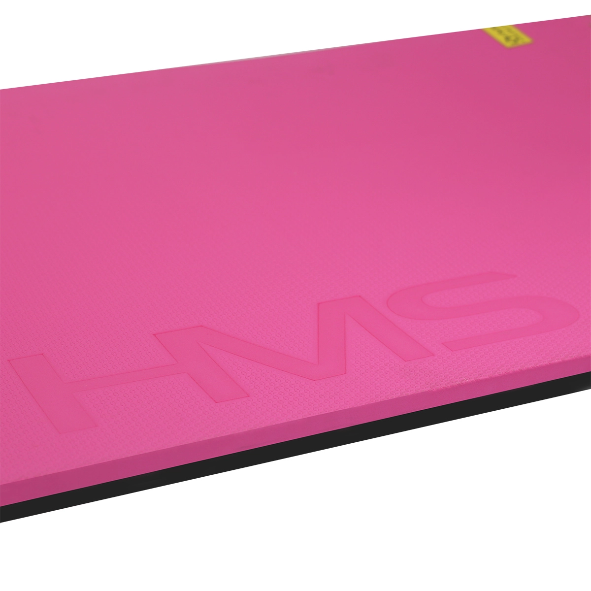 Le tapis double face HMS Premium est conçu pour des entraînements exigeants en studio comme à la maison. La couche inférieure antidérapante en EVA adhère fermement au sol, tandis que la surface supérieure plus douce en TPE est agréable au toucher et offre un excellent amorti des impacts. Les œillets en acier intégrés permettent une suspension rapide et hygiénique sur un support, ce qui facilite le rangement et fait gagner de la place.